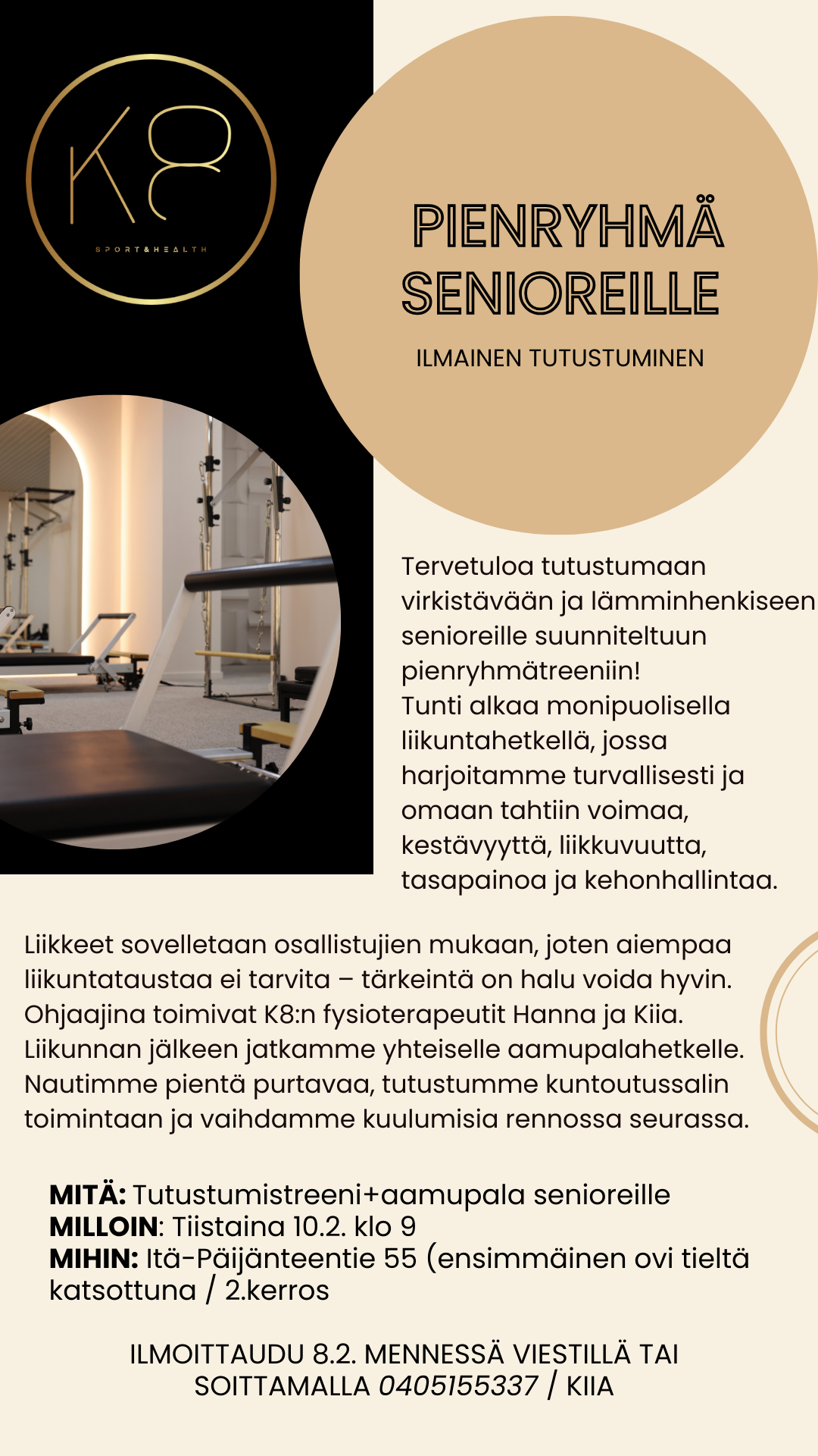 Tervetuloa tutustumaan virkistävään ja lämminhenkiseen senioreille suunniteltuun pienryhmätreeniin!